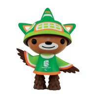 Sumi is the official paralympic mascot of the games. He's an animal spirit figure with furry legs that turn and and a head that swivels. As you can see from his action figure Sumi is quite an unique critter. He wears the hat of the orca whale, has the wings of the thunderbird and the furry legs of the black bear. Sumi loves the outdoors, alpine skiing, and flying over the mountains with his friends on his back.