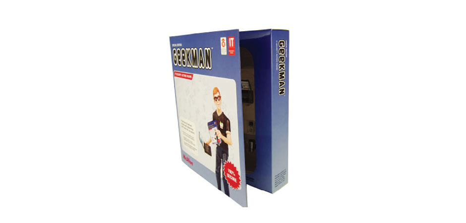 A heroic GeekMan, Special Edition - IT Security Action Figure was designed to appeal to technology professionals. Complete with 5 accessories including an infallible mega-laptop, an intravenous caffeine delivery unit, and a nanonerd atomic watch, the geeky hero was packaged in a pseudo-software box covered with fun copy about IT professionals and computer security.
